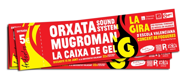 Les Fogueres de Sant Joan arriben enguany a ritme de la millor música en valencià. El pròxim dissabte la Universitat d' Alacant acollirà el Fesfoc '13!, un concert amenitzat per Escola Valenciana en el que es gaudirà de la música d' Orxata Sound System, Mugroman i la Caixa de gel. Els tres grups arriben a les Fogueres d' Alacant estrenant els seus nous treballs.
