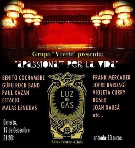 La banda de Rock&Roll Malas Lengua actuarà juntament amb altres formacions a la Sala Luz de Gas el pròxim 17 de desembre al concert benèfic 'Apassiona't per la vida', que destinarà els fons recaptats als projectes Educo i a l'Obra Social de l'Hospital Sant Joan de Déu, a Esplugues de Llobregat (Barcelona). Malas Lenguas va néixer el 1993 de la mà del periodista Ivan Rosquellas, i ara presenta el seu primer disc, 'Tarde pero llego'. El disc té la col·laboració de Candy Caramel --baixista d'Andrés Calamaro--, Daniel Griffin --bateria de Fito & Fitipaldis--, i Alfonso Pérez --teclista d'Alejandro Sanz.