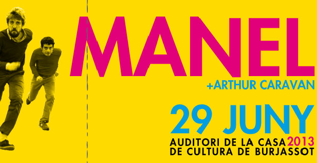 L'Auditori de la Casa de la Cultura de Burjassot acollirà el proper dissabte 29 de juny als Manel i Arthur Caravan. Els Manel tindran l'ocasió per a presentar en terres valencianes el seu nou disc Atletes, Baixin de l'escenari. Per la seua banda, els alcoians Arthur Caravan que estrenaren el videoclip Vents , del disc Atles enharmònic, fa uns mesos, estan preparant un nou treball per a la tardor.Els assistents pondran gaudir de l'últim disc dels Manel estrenat al mes d'abril. Amb Ateles, Baixin de l'escenari, els catalans es distancien pel que fa a l'estil dels dos anteriors treballs (Els Millors Prefessors Europeus i 10 Milles per veure una bona armadura). Amb aquest últim s'aproximen a un estil més pop però sense perdre el marcat folk que els caracteritza. La banda ja ha estat present a principals festivals com el Primavera Sound i també se'ls espera aquest estiu a Borriana a l'Arenal Sound. Per a tots aquells que vulguen assistir al concert l'obertura de portes serà a partir de les 20:00 hores. Les entrades anticipades es poden aconseguir per 25 euros a Onetwotix, Ticketmaster i a l'Auditori de Burjassot, Amsterdam, Harmony, Oldies, Flexidiscos.