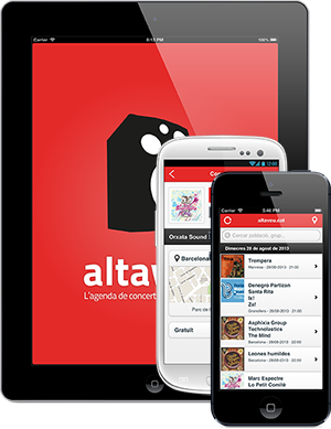 Després de dos anys de la posada en marxa de l’altaveu.cat, la intenció de consolidar una agenda dels concerts d’arreu dels Països Catalans ja és una realitat més que consolidada. L’agenda ha superat els 7000 concerts al llarg d’aquest anys i ha creat una base de dades on es poden consultar enllaços, discografies de més de 7000 grups, gairebé 600 vídeos i més de 300 notícies escrites de blocs i revistes digitals externes (com Tresdeu, Directe.cat, Totmusicat, Indicat...), fet que la posiciona com a lloc web de referència per cercar concerts i informació musical dels Països Catalans. A més a més, durant aquest darrer any, ha augmentat considerablement la col·laboració dels usuaris afegint concerts i vídeos i, com a conseqüència, el nombre de visitants al web. Altaveu.cat va néixer per la mancança d’informació sobre els concerts d’arreu dels Països Catalans. A partir d’aquesta primera idea, el web ha evolucionat i ha millorat afegint nous apartats i funcionalitats per facilitar l’accés a la informació dels grups com enllaços a les seves webs o a plataformes gratuïtes com Spotify o YouTube per poder escoltar la seva discografia.Amb motiu del segon aniversari de l’altaveu.cat volem presentar-vos la nova aplicació gratuïta per a Android iiOS que esperem que us sigui útil per anar de concerts. Actualment l’aplicació permet consultar tots els concerts de l’altaveu.cat, comprar entrades, conèixer els enllaços i pròxims concerts dels grups i localitzar els concerts més propers del dia, però, a poc a poc anirem actualitzant-la amb noves funcionalitats i millores.